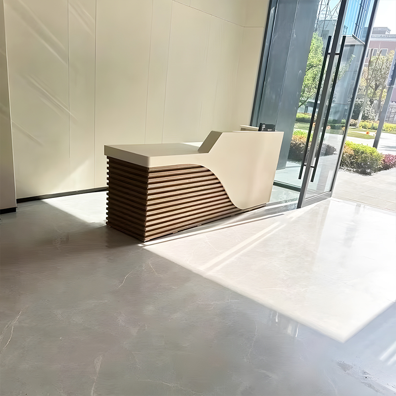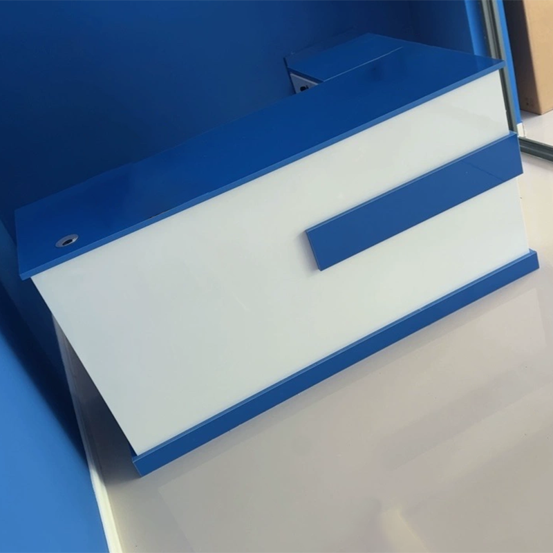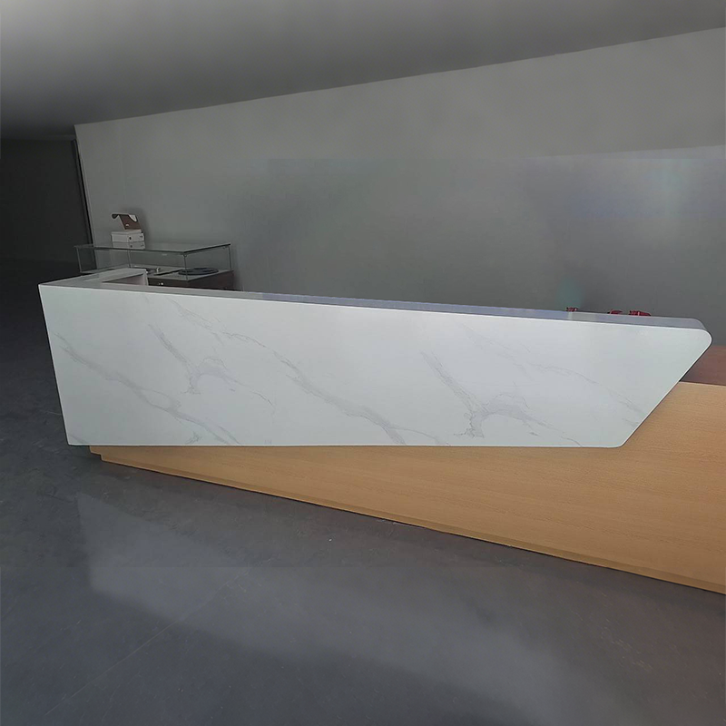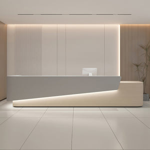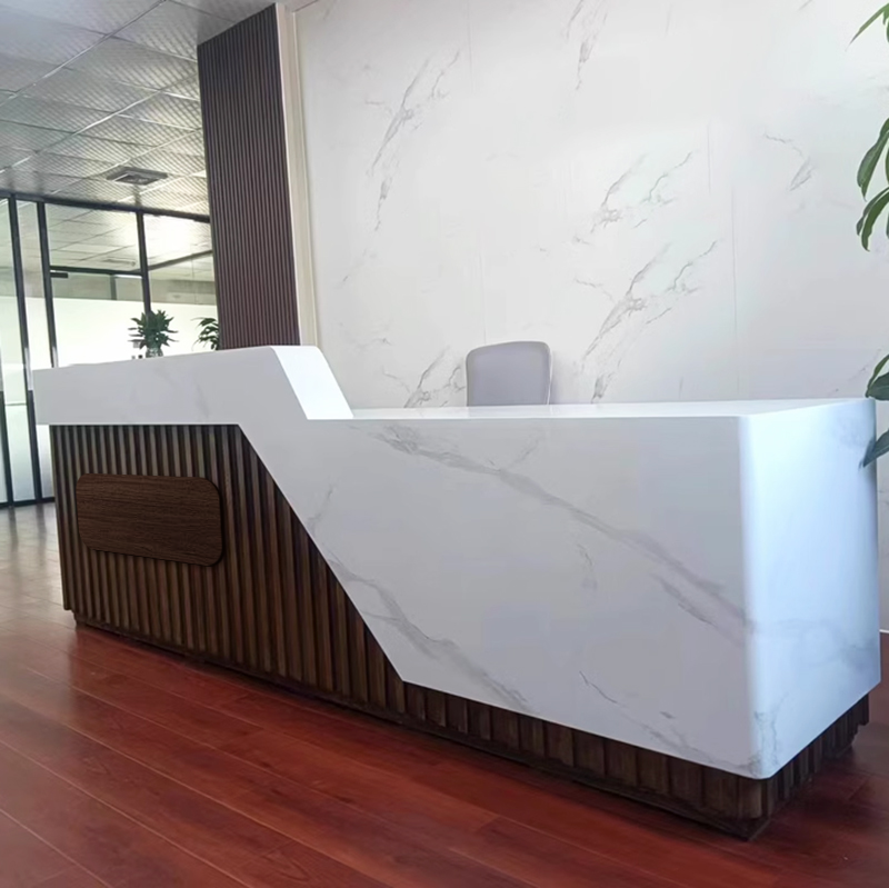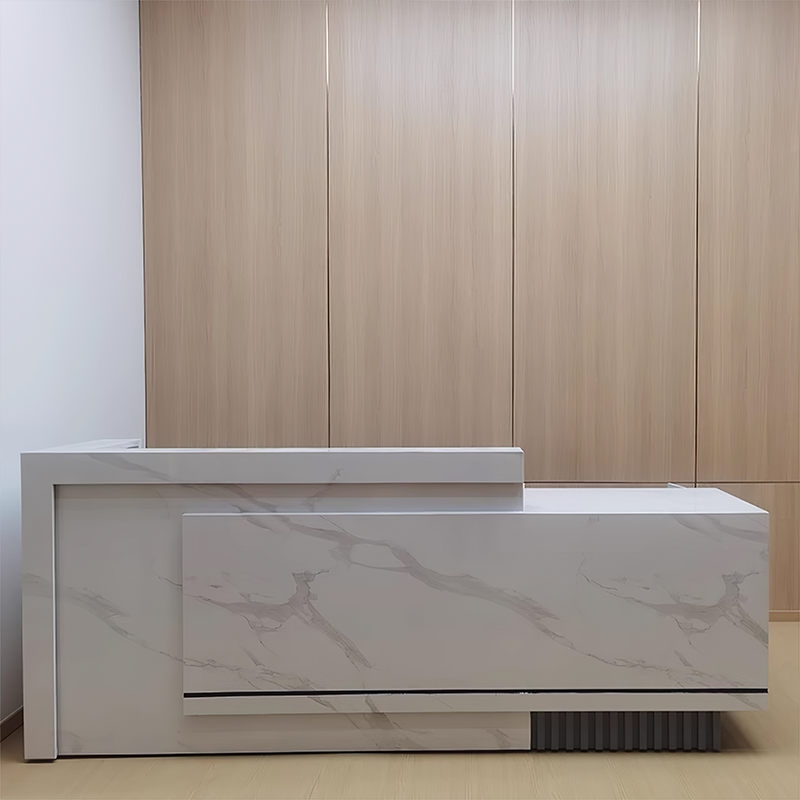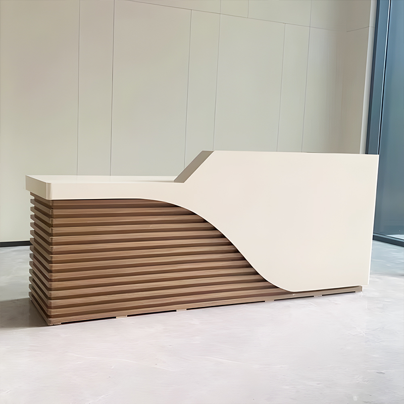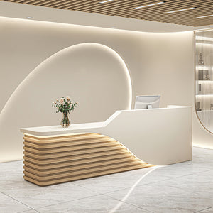 The reception desk is great! The material is thick and sturdy, and the craftsmanship is excellent. The size is just right, not too big or too small. There’s no unpleasant smell, and it offers plenty of storage space. The design is modern and stylish, with well-crafted details. It looks fantastic in our office entrance—simple, elegant, and visually appealing.