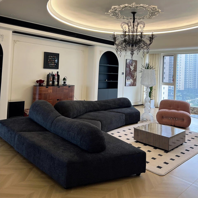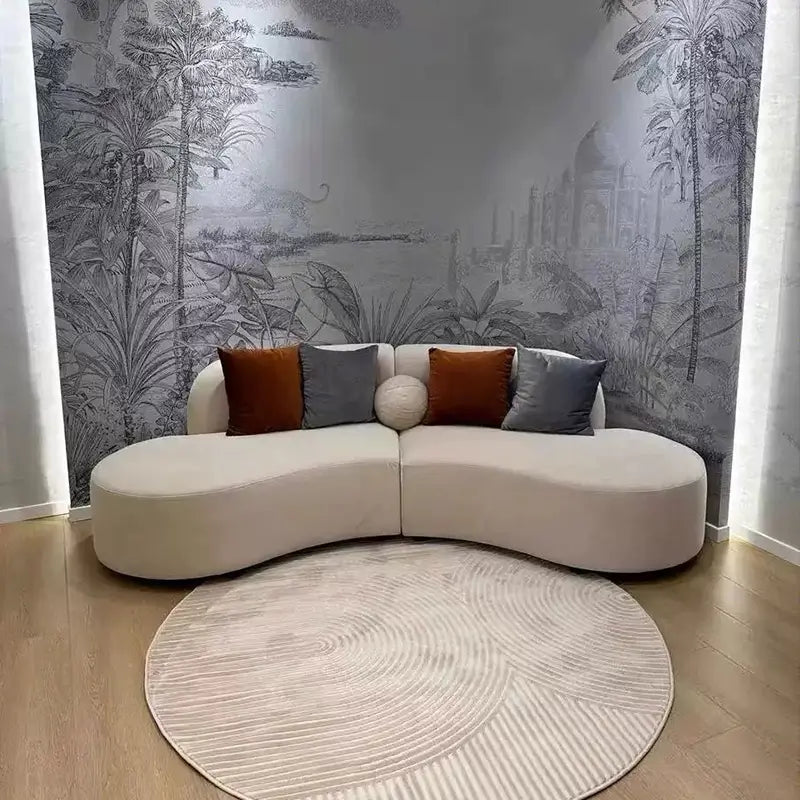 Minimalist Soft Suede Curved Frosted Fabric Sofa with Single Armrest for Living Room