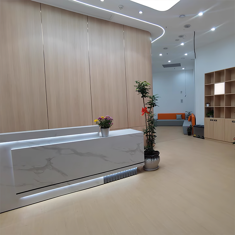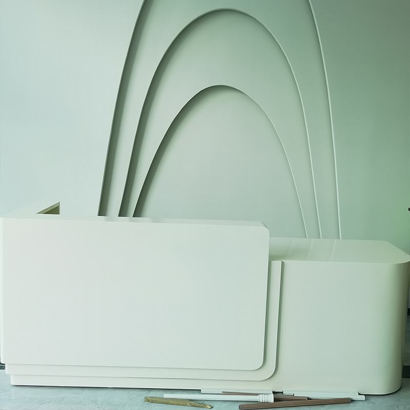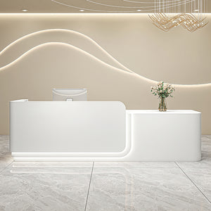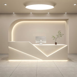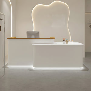 I purchased the front desk with a pure white design, and it looks absolutely beautiful. The surface is smooth, making it really easy to clean. It gives our spa a clean, welcoming first impression, and the front of the desk has a great sense of depth. The LED light strip, in particular, really draws attention and adds an eye-catching touch.