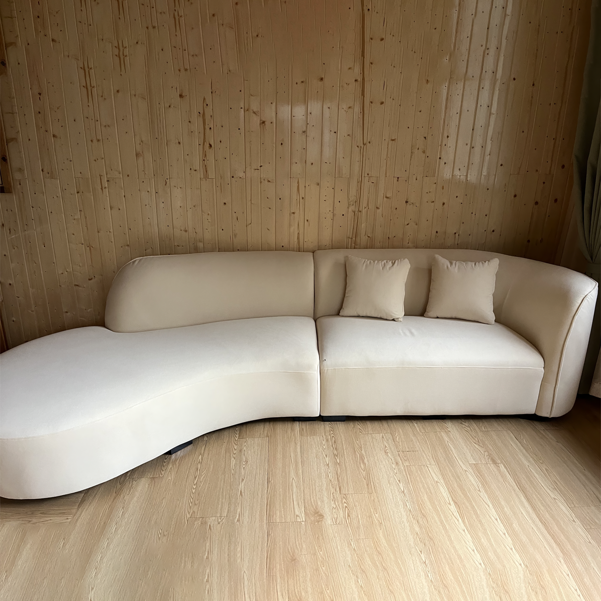 I fell in love with this one right away. The fabric is soft, skin-friendly, and has a great feel. The craftsmanship is spot on, and there’s no odor. It’s really comfortable to sit on!