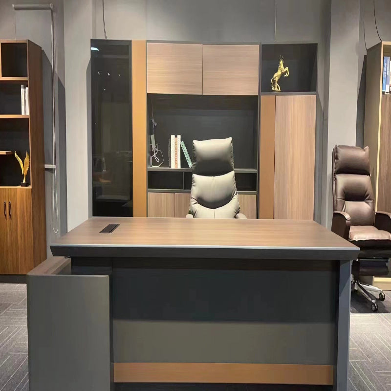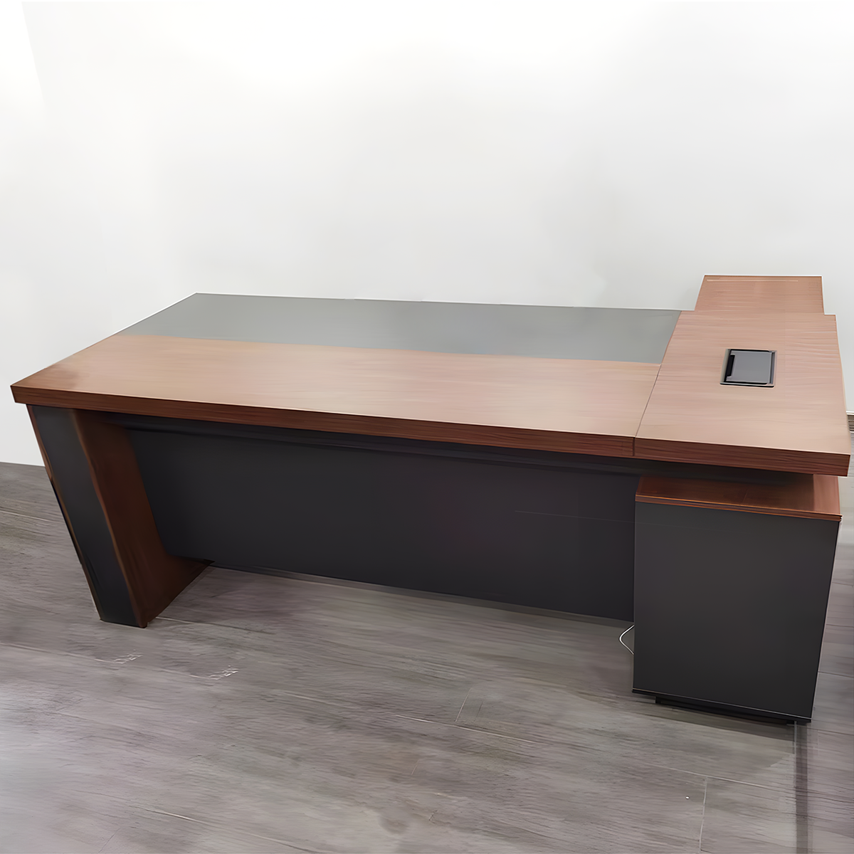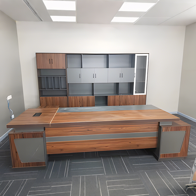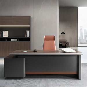 I bought two different-colored executive desks, and both colors look amazing. They arrived with no unpleasant smell at all. The tabletop is thick, and the design is very modern. Assembly was easy, and the materials are solid with excellent craftsmanship. Although the style is simple, it fits our company's needs perfectly.