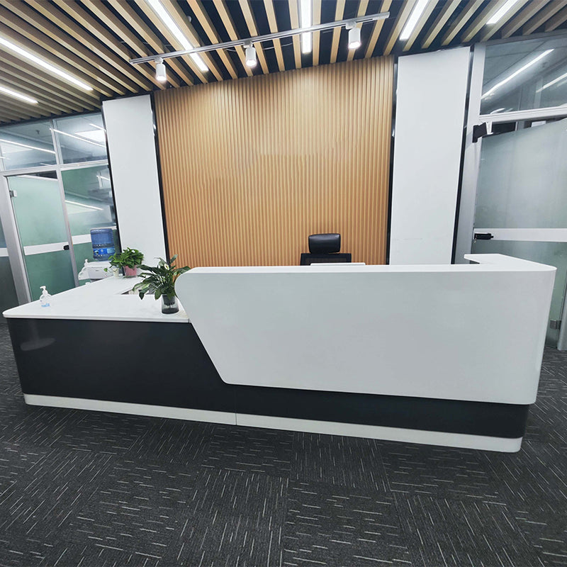 Modern L-Shaped Reception Desk with Side Storage for Office Front Counter (Stock Items)