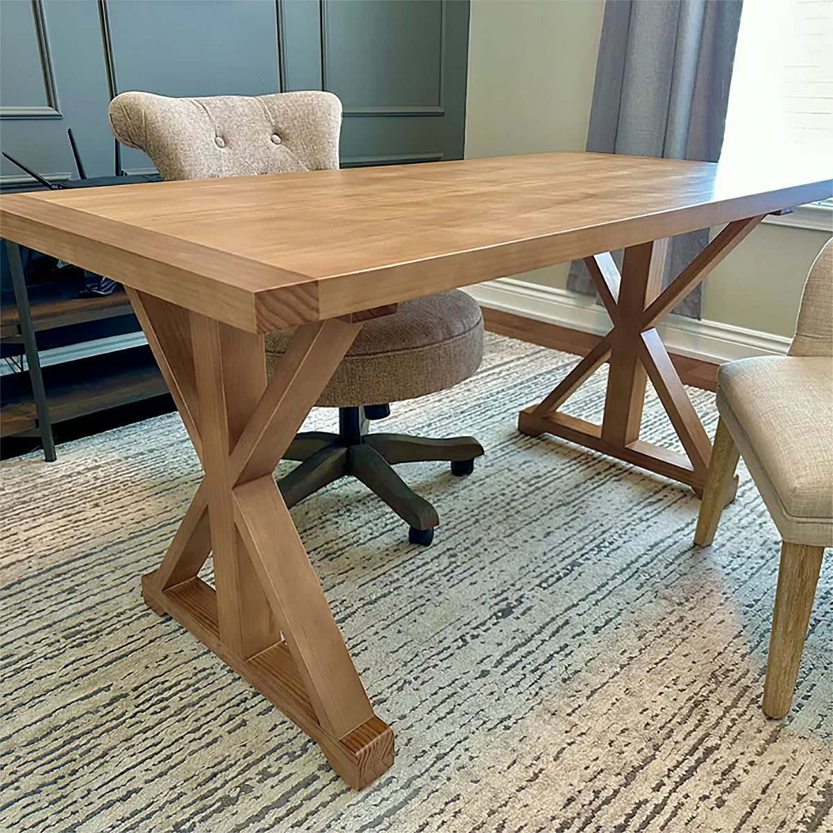 I bought this desk to use as a work table in my studio, and it's perfect! The solid wood gives it a nice, sturdy feel, and it has a subtle wood scent. The design is stylish, simple with a bit of a vintage touch. The legs are thick and solid, making the desk very stable. The craftsmanship is top-notch, and the surface is smooth to the touch. Assembly was a breeze, and I had it set up in no time.