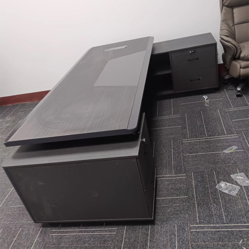 Modern L-Shaped Executive Desk with Side Storage Drawers for Office(Stock Items)