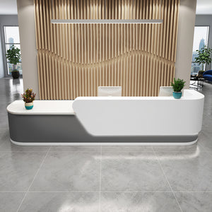 This is perfect! Exactly what we needed, and the size is just right! The quality is sturdy and durable. The larger size looks great in the lobby, giving it a spacious and elegant feel. The reception desk can be divided into two sections: one for work and the other for guest reception, which is a really practical setup. The drawers with locks are great for securely storing personal items, and the storage cabinets are super helpful for organizing smaller things. This reception desk meets all of my office’s needs.