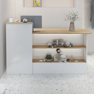 This checkout counter is very practical for me and definitely worth the price. The tabletop is spacious, allowing me to place items freely. It looks just like the pictures, and the size is perfect. It has a high-end feel while still being simple, which is exactly what I needed. The overall color gives it a stylish look, and my colleagues all love the design. The material quality is excellent, with no noticeable odor.