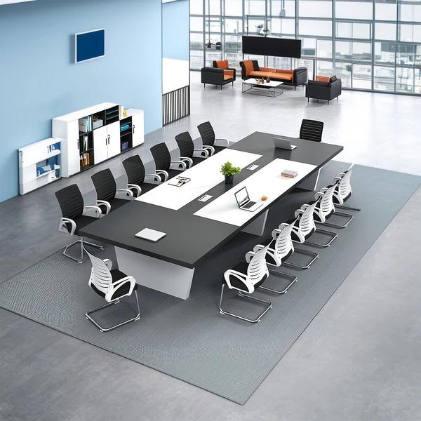Modern Rectangular Conference Table for Office with Side Storage Cabinet