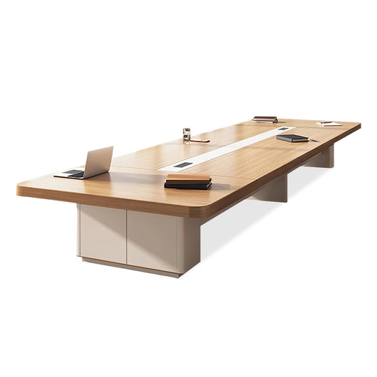 This large, modern conference table features a minimalist design with a high-end color-blocked desktop, offering a stylish and professional atmosphere for any meeting room. Its premium E1-grade eco-friendly material ensures durability while being safe and free from harmful chemicals. The table includes a spacious under-table area, perfect for comfortable seating. The table also boasts an effective function zoning design that visually separates areas for a more organized, productive environment. Additionally, the thickened 2” desktop and widened surface provide ample workspace, while the side storage space helps keep documents and office supplies neatly organized. Available in multiple colors and sizes, this table is the perfect solution for any office or meeting space that demands both aesthetics and functionality.