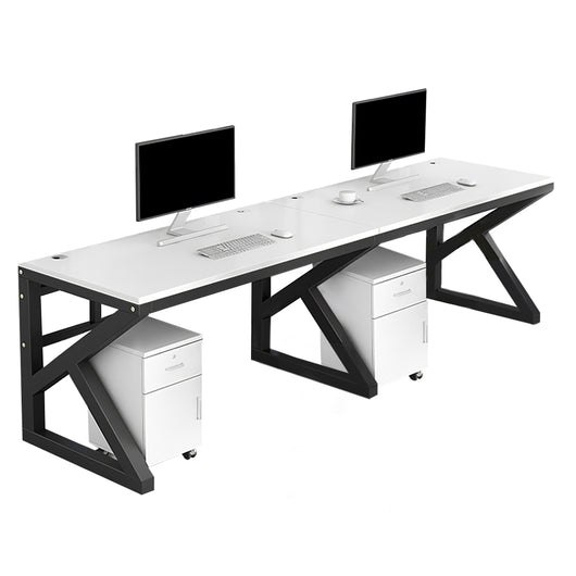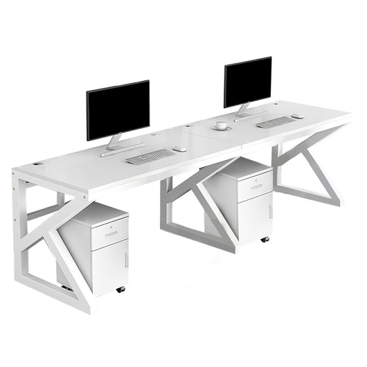 This modern, minimalist office desk is designed to meet the needs of both individual workers and team environments. Constructed from eco-friendly E1 grade materials, the desk is durable and reliable, with a thickened, smooth desktop that resists warping and cracking. The desk is supported by a robust, powder-coated K-shaped steel frame that provides excellent stability while being resistant to rust and corrosion, ensuring long-lasting use. One of its standout features is the curved screen partition, which offers privacy while still encouraging communication and collaboration among team members. This thoughtful design enhances the overall comfort and productivity of the workspace. Additionally, the desk includes practical cable management holes to keep your cords and wires organized, reducing clutter and creating a tidy work area. The included movable file cabinet offers convenient storage for important documents and personal items, with a lock for added security. The desk is available in various colors and sizes, allowing you to customize it to suit your office's style and space. Whether you're outfitting a home office or a larger corporate setting, this versatile desk combines functionality and style to create a productive work environment.