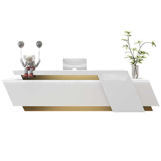 The unique rounded corners enhance the overall appearance of the reception desk, increasing its visual appeal. They are designed to be rounded to prevent collisions and scratches, making the desk both aesthetically pleasing and safe.