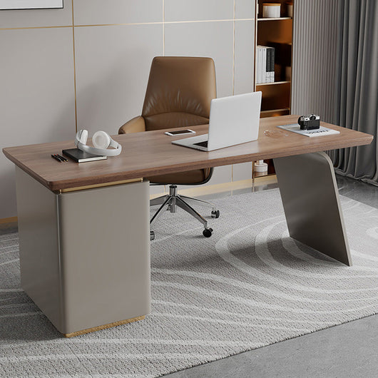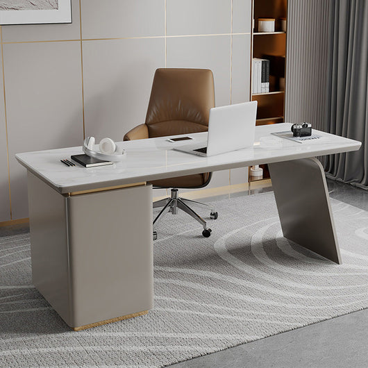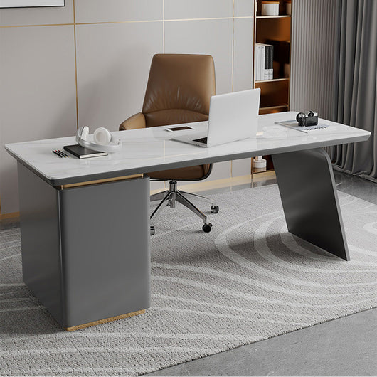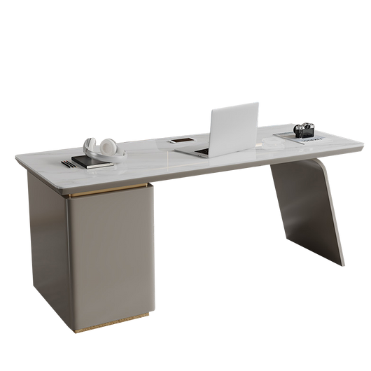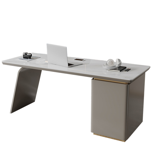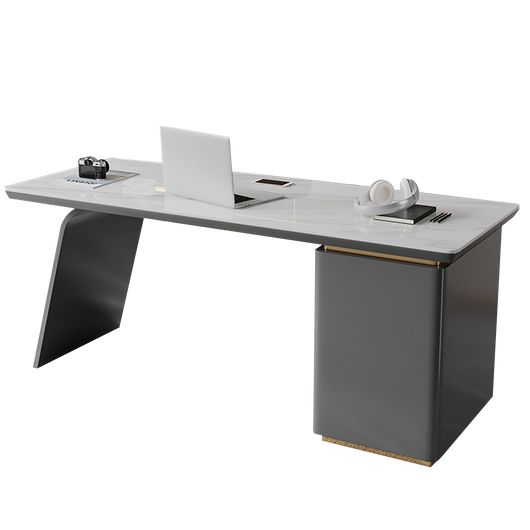 This modern luxury desk offers both style and versatility, perfect for your home office or study. Choose between two stunning tabletop options—sintered stone or wood—both paired with 4C piano lacquer for a sleek, refined finish. The desk features three small drawers plus a spacious solid wood drawer, providing ample storage. Its polished mirrored corners and curved artistic legs add a sophisticated touch. Crafted from E0-grade multi-layer solid wood, this desk ensures durability while bringing a designer feel to any workspace.