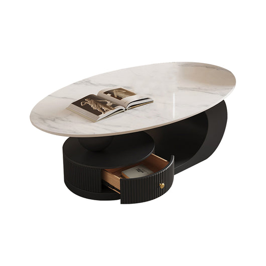 This minimalist modern oval coffee table is a perfect blend of functionality and elegance. Made from food-grade new sintered stone, it features natural stone veins that have been sintered at 1300°C, making it resistant to high temperatures, scratches, stains, and corrosion.