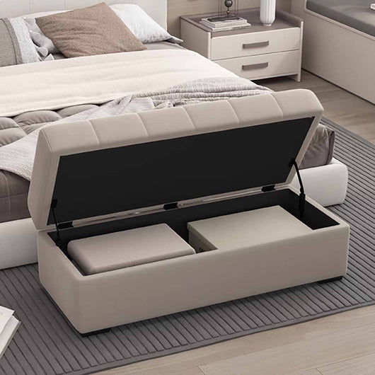 This versatile storage bench is an ideal addition to your bedroom or entryway, offering both style and functionality. Upholstered in durable cat-scratch-resistant fabric, it withstands wear while providing a comfortable seat. The sturdy rubberwood frame ensures long-lasting support, and the high-density foam filling makes it a cozy spot for resting your feet or sitting while you change shoes. Its rounded corners enhance safety, making it perfect for homes with children or pets.