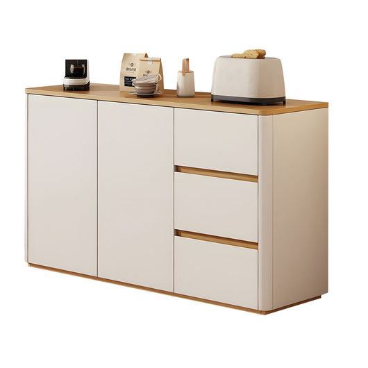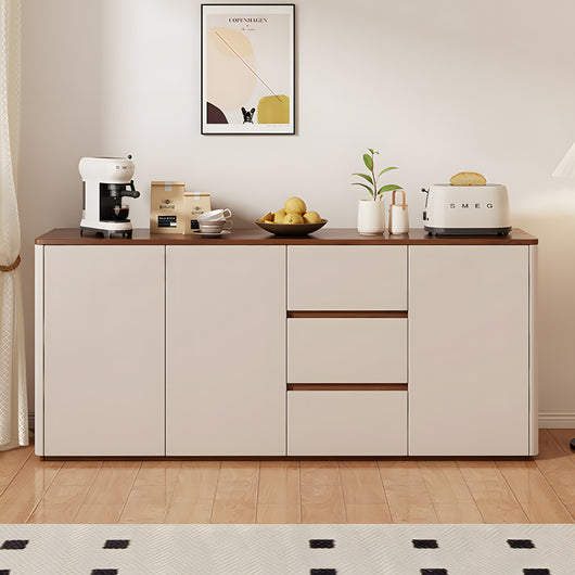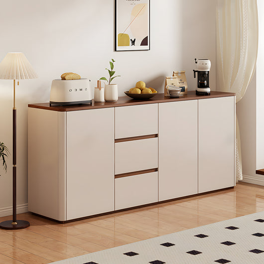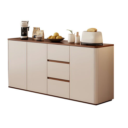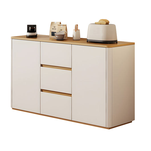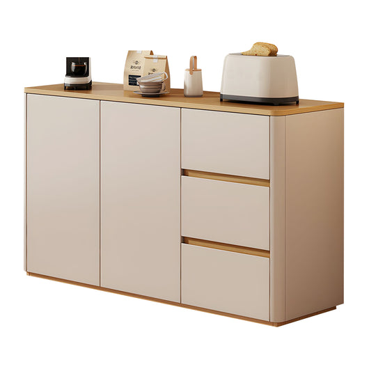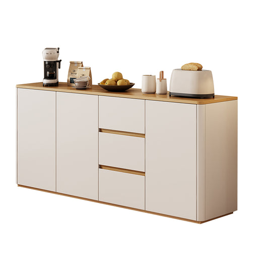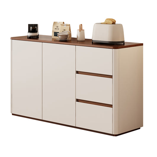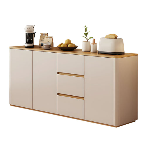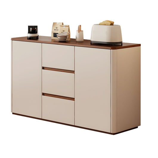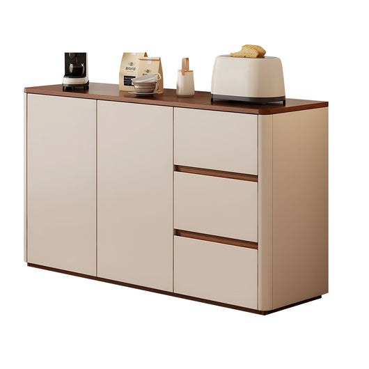 This solid wood sideboard is perfect for modern, minimalist living spaces, offering both style and functionality. Made with eco-friendly solid wood boards and thickened side panels, it’s sturdy and durable, with smooth rounded corners for safety. The spacious tabletop provides extra display or storage space, while adjustable shelves and three large drawers help organize tableware, kitchen items, or household essentials efficiently. Durable metal slides and a handle-free push-to-open design ensure smooth, convenient operation. Its freestanding structure enhances stability, prevents dust accumulation, and supports heavier items. Available in multiple colors and sizes, it’s ideal for living rooms, dining areas, or any space that needs organized, elegant storage.