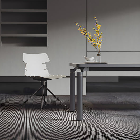 This large rectangular meeting table features a spacious surface that supports laptops, documents, and collaborative discussions. Its under-table cable management system keeps wires organized, while the aluminum alloy cylindrical legs with star-pattern detailing provide stability and a modern style. The rounded corners prevent accidental bumps. The accompanying ergonomic chairs are made from high-quality PP material, offering a supportive curved backrest and a wide, comfortable seat for long meeting sessions. This set helps create an inviting and efficient workspace, suitable for corporate conference rooms, co-working spaces, reception areas, and brainstorming environments.