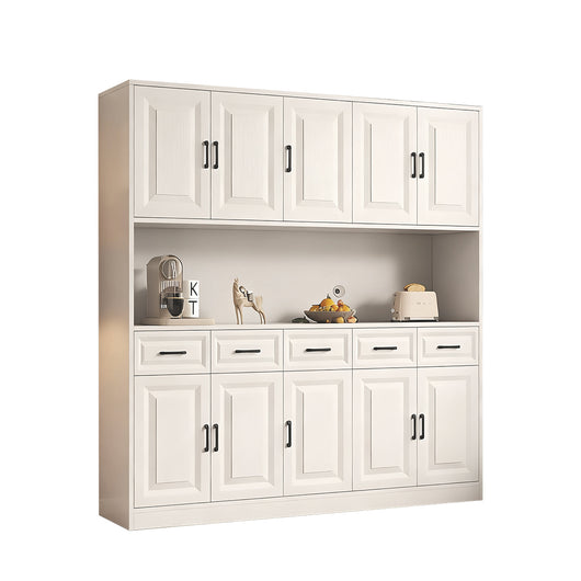 This modern, minimalist sideboard combines style and durability for everyday use. Made from E0-grade solid wood, it features a high load-bearing capacity and thick back panels for long-lasting stability. The top cabinet and open countertop offer extra storage and display space. Thoughtful designs, including molded cabinet doors, silent metal slides, and soft-close hinges, ensure a smooth and quiet user experience. It features a raised baseboard to protect against moisture, cable holes for wire management, and removable shelves for flexible arrangement of large items. Perfect for dining rooms, living areas, or hallways, it maximizes storage while keeping your space tidy and appealing. Multiple sizes are available to fit different spaces.