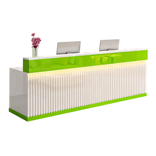 This rectangular reception desk features a sophisticated slatted design in solid wood, adding depth and dimension to any space. Ideal for law firms, advertising agencies, and consulting centers, it enhances the overall aesthetic with its modern and stylish look. The piano lacquer finish offers high hardness and corrosion resistance, making it easy to clean and durable against daily wear and scratches. Its glossy surface brightens the room and creates a sense of spaciousness. Customizable with your logo and available with a variety of internal configurations, this desk is designed to meet your specific needs. Perfect for making a lasting impression and fitting seamlessly into your professional environment.