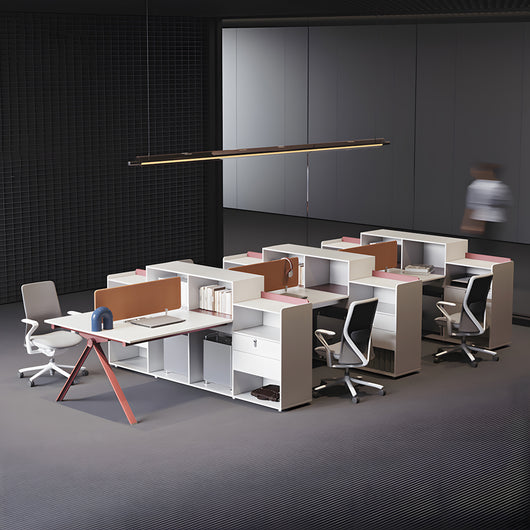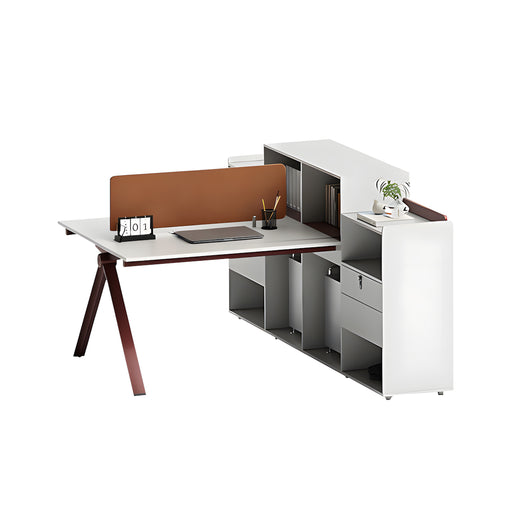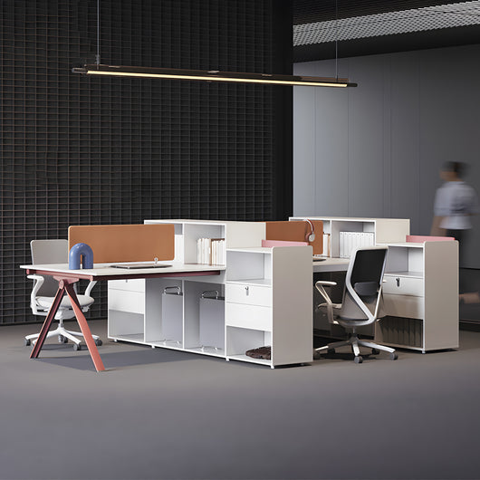 RecommendationModern White Office Desk with Side Storage & Panel for Employee Workstation