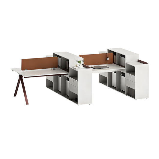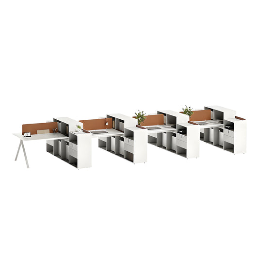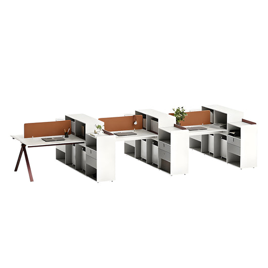 This desk combines a minimalist white design with practical features, making it perfect for workstations, accounting desks, or collaborative office areas. It features a stable structure and a fully enclosed aluminum alloy frame for long-lasting durability, while the nano fabric desk panel ensures privacy and sound insulation. The cable management keeps wires organized and the workspace tidy. The desktop has streamlined edges and a smooth surface comfortable to touch and easy to clean. Three-tier storage compartments plus lockable drawers with a smooth password mechanism provide secure, organized storage for documents, office supplies, and personal items. Available in multiple sizes, this desk easily adapts to various office layouts.