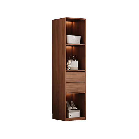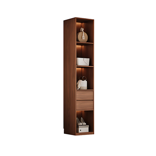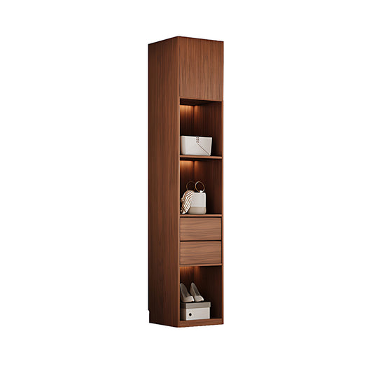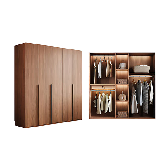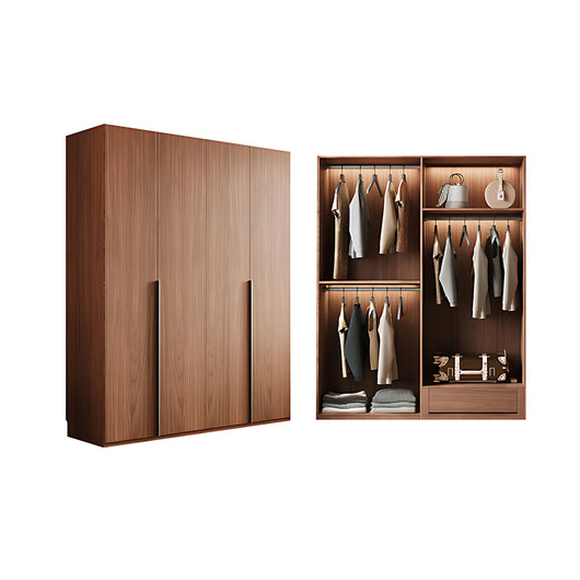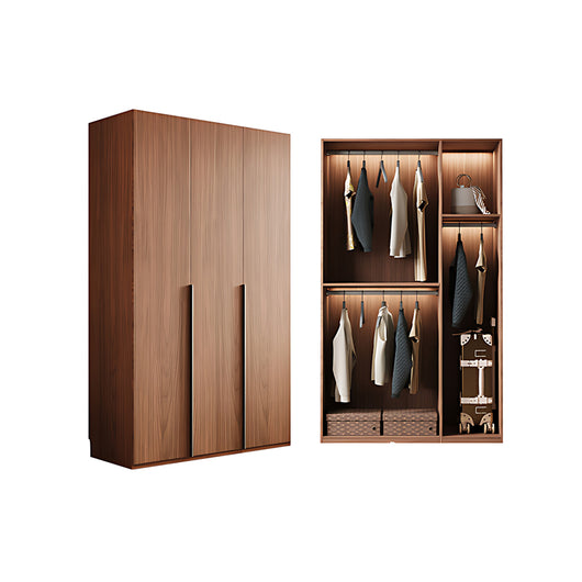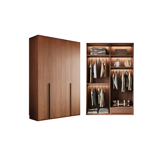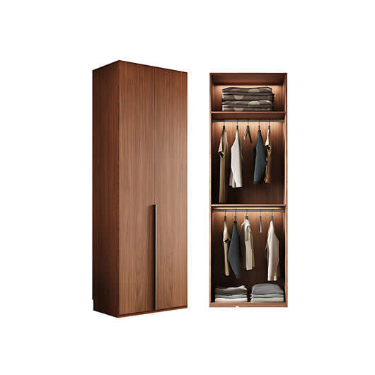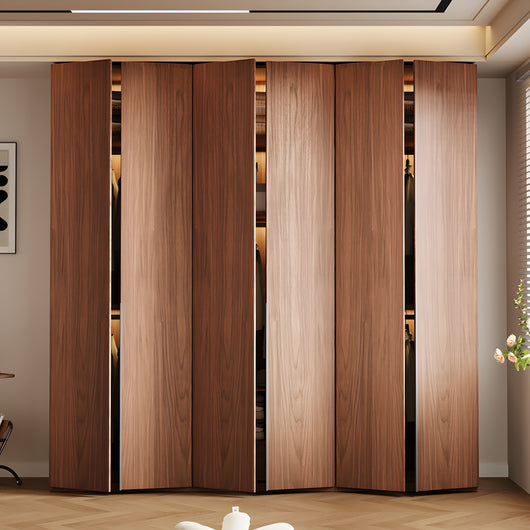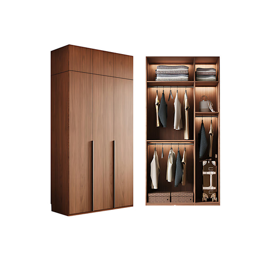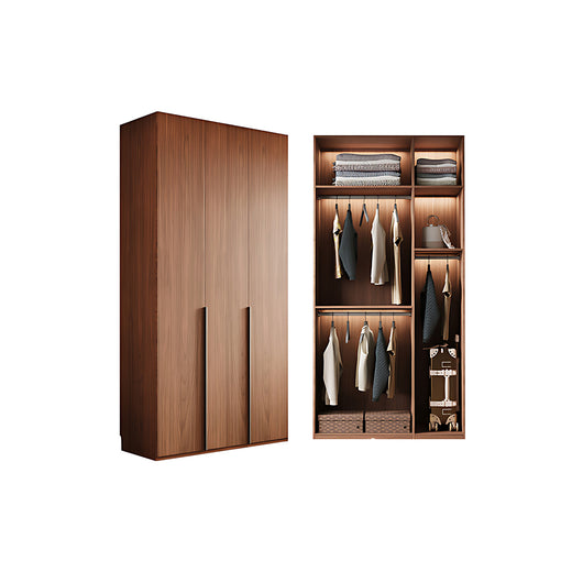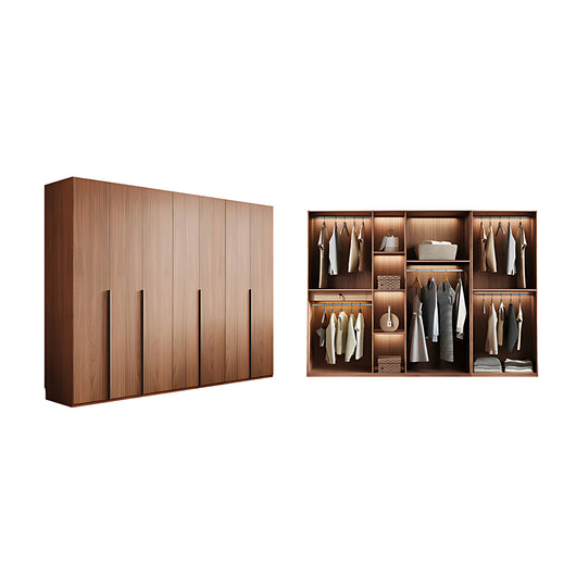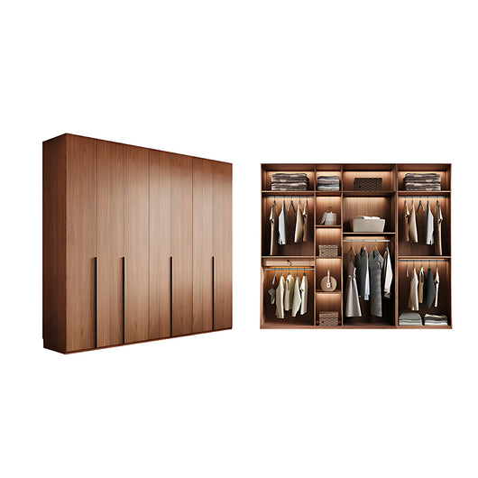 This wardrobe is crafted from ENF grade OSB with a rich walnut finish, offering both style and durability. It features thickened panels with PUR edge banding for scratch and moisture resistance. The design includes a dustproof independent top cabinet, a matching desk cabinet plus a storage side cabinet, and a large-capacity interior with increased cabinet depth to store everything from seasonal clothing to bulky coats. High-quality aluminum alloy clothes rods, black-finished handles, and premium hardware ensure long-lasting performance. The base includes a reserved toe-kick space so the wardrobe sits flush against the wall for extra stability. Multiple sizes are available, making it versatile for bedrooms, home offices, or multipurpose living spaces where organized storage and a clean, modern look are important.