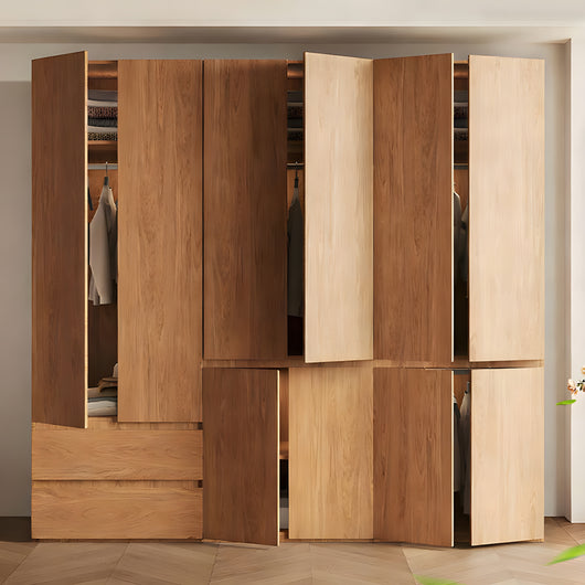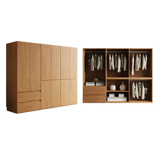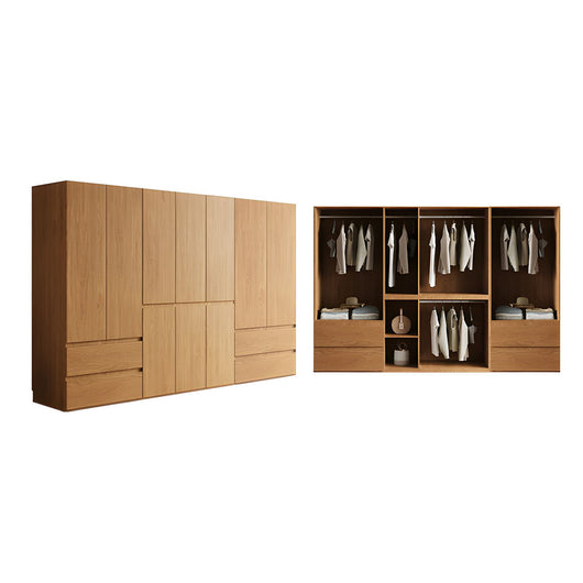 This ENF grade oak-style wardrobe combines modern design with practicality, making it ideal for minimalist bedrooms and home spaces. Constructed from antibacterial, moisture-resistant ENF OSB and finished with durable PUR seamless edging, it offers long-lasting stability and a natural wood-grain look. The thickened panels and deepened outer frame provide extra strength and storage capacity. Large, sectioned compartments, a premium aluminum hanging rod, and scratch-resistant grooved handles keep clothes organized and easy to access. Soft-closing doors, smooth silent rails, and pre-set base for skirting boards enhance convenience, while optional side storage cabinets increase functionality. Available in multiple colors and sizes, this wardrobe fits a variety of bedroom layouts, perfect for master bedrooms, guest rooms, or shared spaces.
